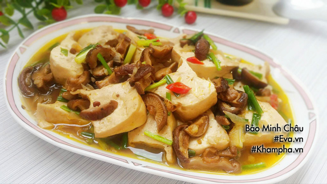Đậu phụ sốt nấm là món chay thanh mát, giúp thực đơn của gia đình bạn thêm phong phú hơn dịp Rằm tháng 7.