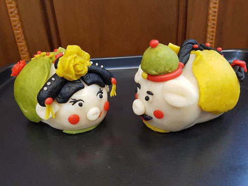 Tác giả Cherry Phạm chia sẻ cách làm những bông hoa nổi như trên là pha màu vào bột rồi trộn lên tiếp theo ép thành cánh hoa tiếp đó đem nướng xong rồi phết nhũ lên.