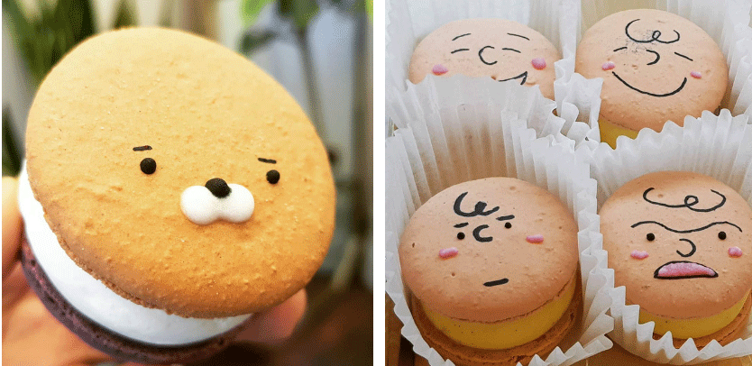 Những chiếc bánh macaron (một loại bánh ngọt nổi tiếng của Pháp) cũng được người Hàn khéo tay trang trí dễ thương như thế này đây!