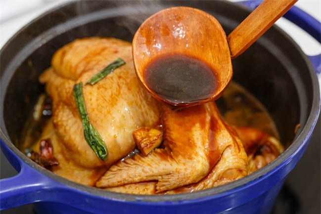 Đun tiếp tầm 15 phút nữa thì tắt bếp, đậy vung ủ gà trong khoảng 10 phút.