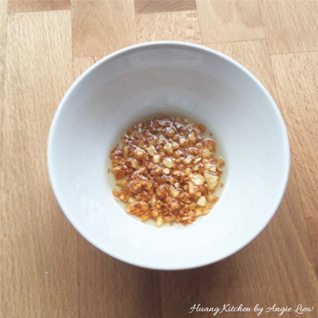 Trong lúc hấp trứng thì đặt chảo lên thêm chút dầu, cho tỏi vào chiên vàng, sau đó đổ ra tô.