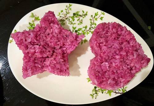 Nguyên liệu: 300g gạo nếp, 1 bó lá cẩm, muối, dầu ăn.