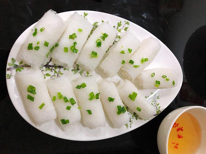 - Dưới dầu hành trên lên trên cuộn bánh hỏi. Ăn cùng nước chấm chua ngọt chấm nem ở trên.