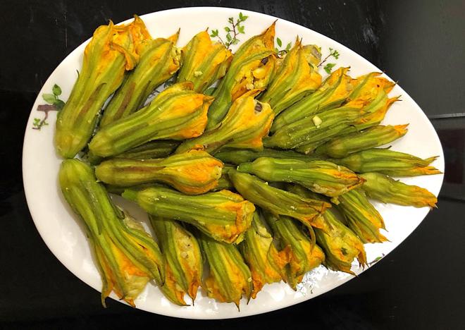- Bông bí nhặt lấy phần bông, rửa sạch, dùng đầu mũi kéo cắt bỏ phần nhuỵ phía trong bông.