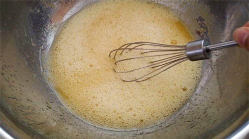 Lấy phần lòng đỏ trứng cho vào âu cùng 1 muỗng cafe mật ong, sau đó dùng phới lồng để đánh bông lòng đỏ trứng cho đến khi sủi bọt và dậy lên mùi thơm.