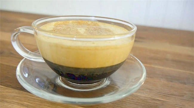 Pha café nóng cùng với sữa đặc, nêm nếm cho vừa với khẩu vị sau đó cho hỗn hợp lòng đỏ trứng vào rồi phủ lên bằng một lớp lòng trắng trứng đánh bông.