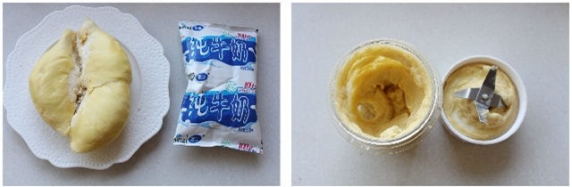 Đầu tiên, lọc lấy phần thịt sầu riêng sau đó cho vào cối xay sinh tố xay nhuyễn.