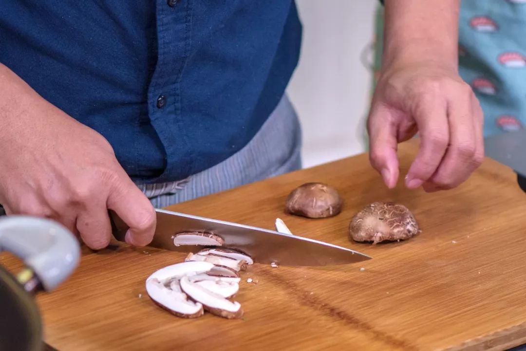 - Nấm rửa sạch thái lát. Hành lá một nửa cắt khúc, một nửa thái nhỏ.