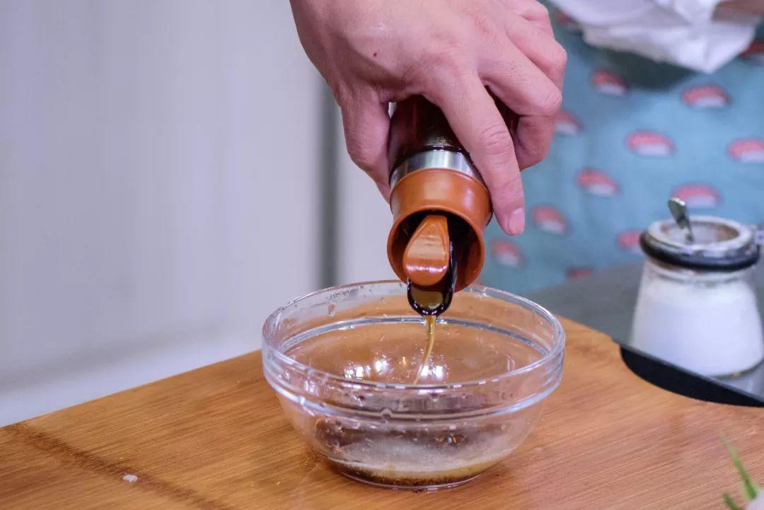 - Làm nước sốt: Trộn 2 muỗng canh rượu gạo, 2 muỗng canh nước tương, 1 muỗng cà phê tiêu trắng, 1 muỗng cà phê đường và dầu mè trong một cái bát.