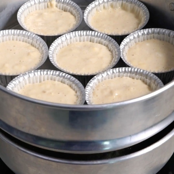 Đun sôi nước trong nồi hấp và hấp bánh khoảng 15 - 20 phút cho bánh chín mềm, thơm lừng là được.