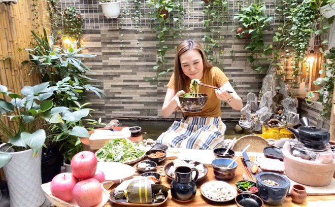 Ngày cuối năm, "Họa mi tóc nâu" mang bếp ra vườn nhiệt tình hướng dẫn fan làm bún mắm Đà Nẵng.