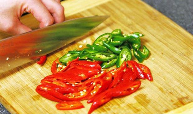 - Trước khi cắt ớt, hãy chà tay bằng dầu rau củ để tránh chúng hấp thụ dầu ớt.