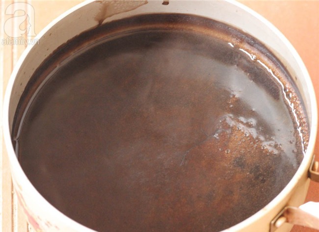 Đổ nước và đường phèn vào nồi, đun sôi. Lượng đường tuỳ thuộc vào khẩu vị của bạn.