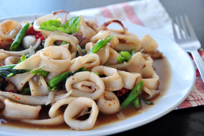 Món mực xào kiểu Thái với miếng mực giòn giòn, nước xốt cay tê tê này chắc chắn sẽ hao cơm lắm đấy nhé!
