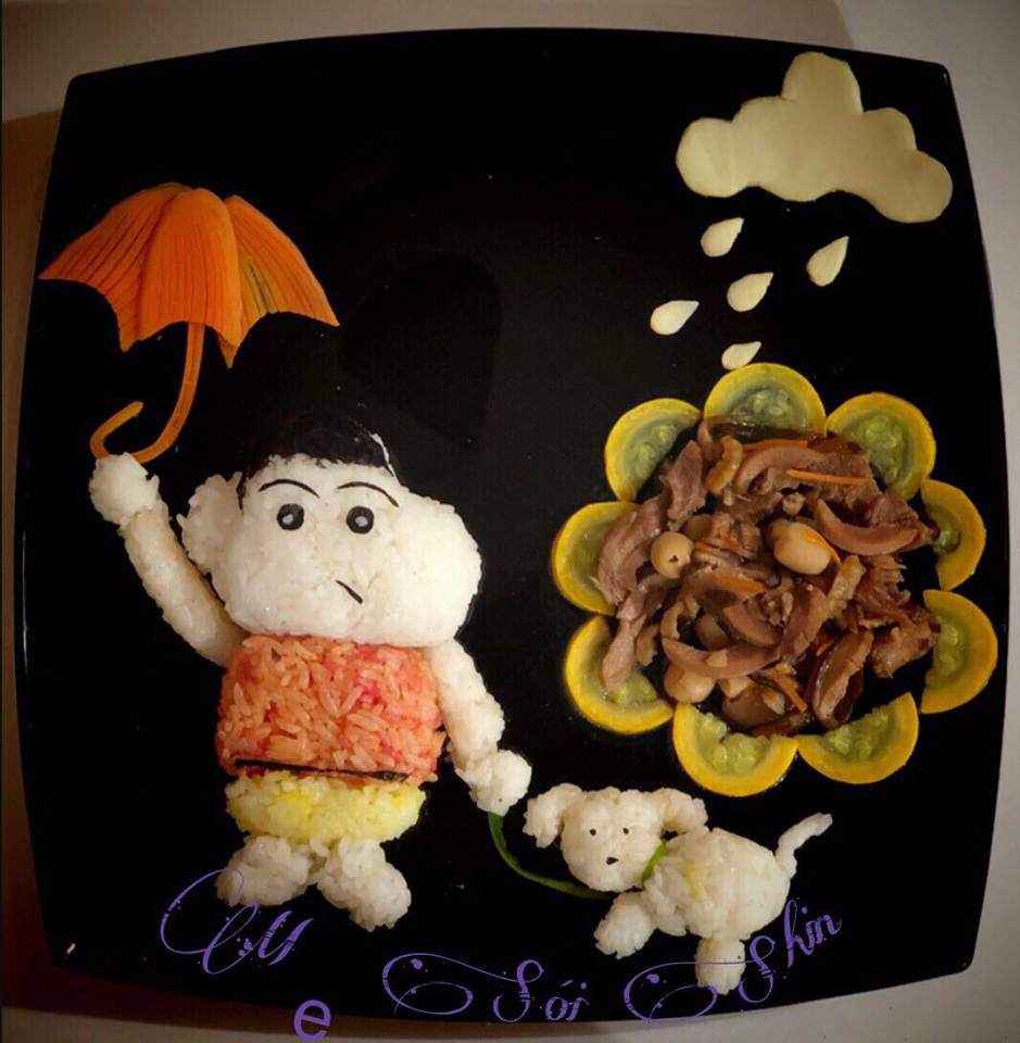 Bằng sự sáng tạo vào khéo léo,chị Kim Hương đã biến những bữa cơm của con thành các bức tranh sinh động khiến các con lười ăn đến mấy cũng khó mà cưỡng lại.