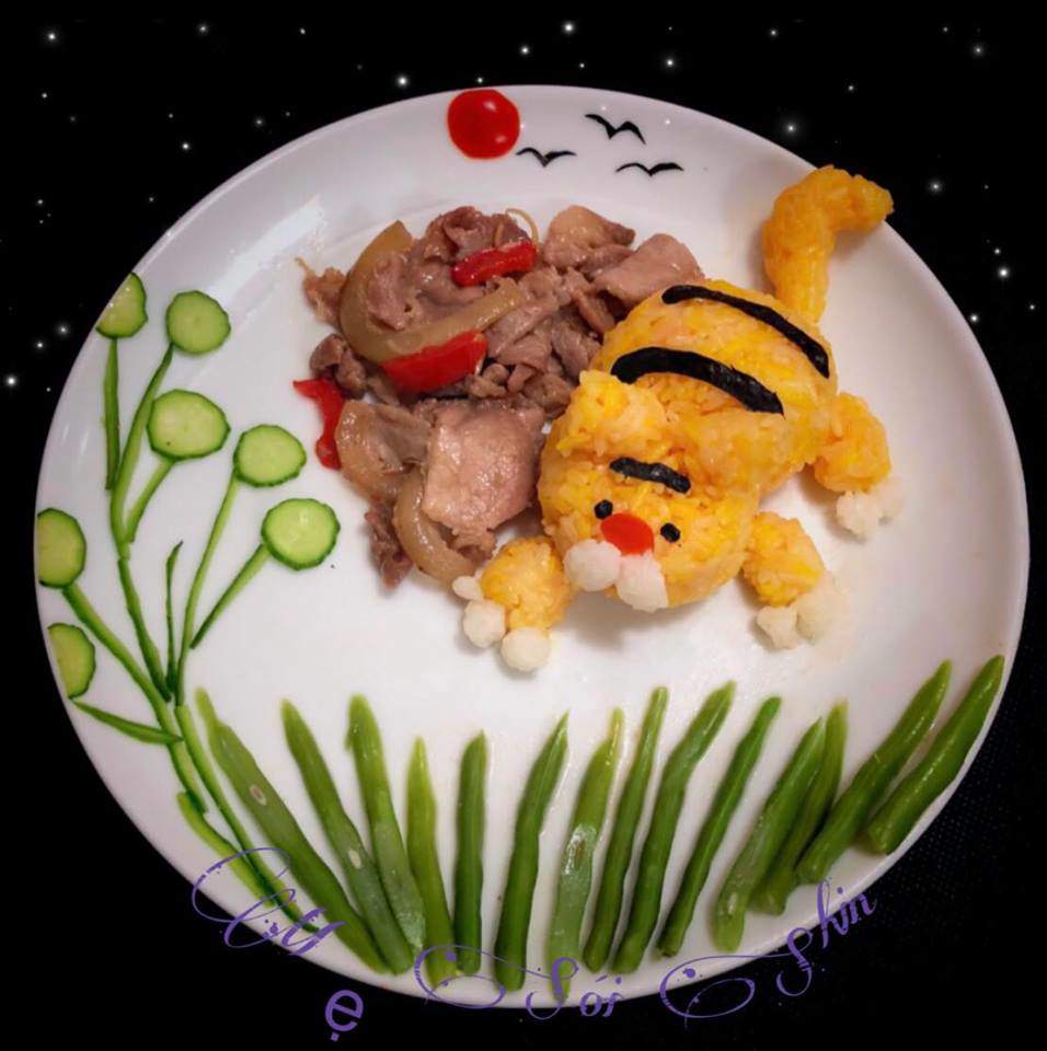 Để luôn mang đến những bữa ăn đủ dinh dưỡng và trị dứt bệnh biếng ăn cho con, bà mẹ trẻ đảm đang, khéo tay Kim Hương ( Hà Nội) đã sáng tạo ra rất nhiều bữa ăn thơm ngon, ngộ nghĩnh đẹp mắt khiến các con lúc nào cũng hào hứng đến bữa ăn để được thưởng thức đĩa cơm " đẹp như tranh " do chị chuẩn bị.