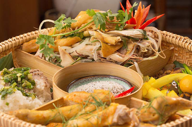 Gà lên mâm là tổng hợp của vô vàn hương vị được chế biến từ gà khiến ai cũng phải ngất ngây. Ấn tượng đầu tiên chắc chắn bạn sẽ choáng với một mâm gà to đùng, đầy ắp nào là gà nướng, gà luộc, gỏi gà... Những miếng gà được chặt vừa vặn, lớp da ngoài bóng mỡ, thịt thì thơm mềm hấp dẫn.