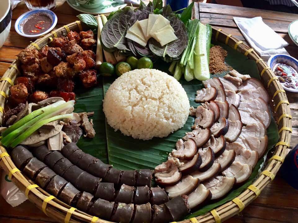 Nếu muốn thử đổi vị với những món của núi rừng Tây Bắc thì hãy nhớ lưu ngay cái tên heo mẹt để lôi kéo đám bạn đi cùng. Một mẹt heo ngồn ngộn với tận 7 món, nào là heo nướng, heo xào lăn, dồi trường chiên, bắp thịt luộc, lòng heo, canh huyết, măng sườn... Món sẽ ăn cùng xôi và một hương vị độc đáo chính là nhựa mận.