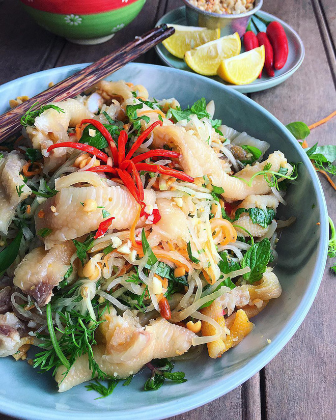 Sự hấp dẫn của món này nằm ở cái giòn, dai của chân gà. Chưa kể chân gà ngấm gia vị chua ngọt lại càng đưa đẩy khiến món ăn thêm hấp dẫn. Ngoài phiên bản nộm với đu đủ, cà rốt thông thường, một số quán còn biến tấu chi bắp cải tím, sốt vào món nộm chân gà rút xương. Vì làm kì công nên món này giá khá cao, trung bình khoảng 30 đến 50 ngàn đồng/ suất.