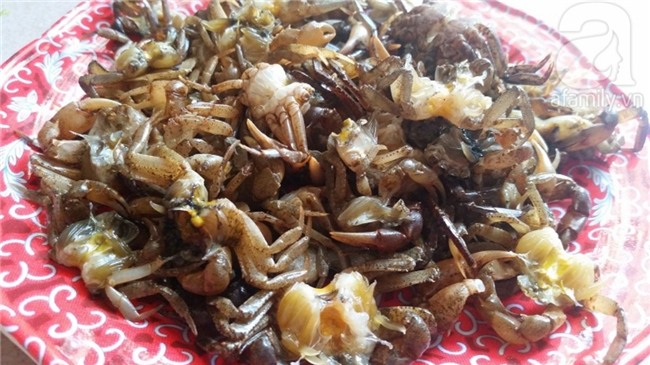 Cua ngâm nước cho bở, rửa lại cho sạch rồi bóc phần mai cua để riêng.
