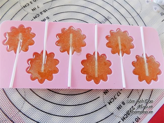 Bước 3: Đổ kẹo vào khuôn nhỏ silicon (hay trên miếng giấy chống dính bằng giấy dầu).