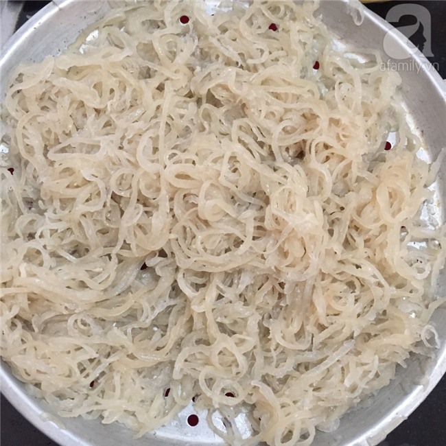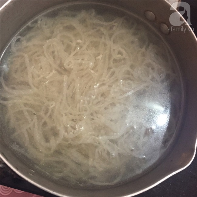 Đặt 1 nồi nước thêm 1 ít gừng đập dập, đun sôi nước, cho bì vào chần lại cho chín hẳn.