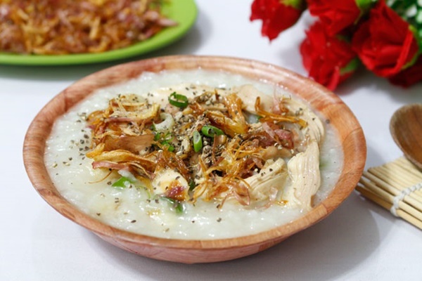 Cháo gà là món ăn phổ biến khắp mọi miền Việt Nam. Gà được luộc để lấy nước dùng, sau đó cho gạo vào nấu cháo, khi gần chín nêm thêm muối, nước mắm... cho vừa miệng. Các loại rau thơm như hành lá, tía tô, mùi tàu sẽ giúp món ăn dậy mùi hơn. Không chỉ là món ăn ngon, cháo gà còn có tác dụng giải cảm rất tốt. Ảnh: Mattapdx.