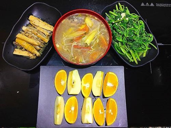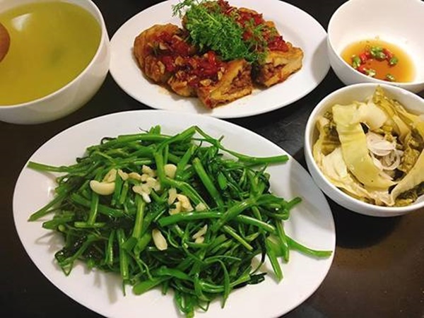Có lẽ nấu ăn thường xuyên và nhanh tay nên cô nàng chỉ mất khoảng 45 phút đến 1 tiếng cho 3 món ăn