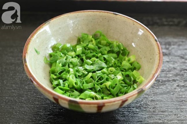 - Bước 6: Hành lá cắt nhỏ, cho vào bát, cho dầu ăn vào rồi dùng màng bọc thực phẩm cho vào lò vi sóng quay chừng 20 giây.