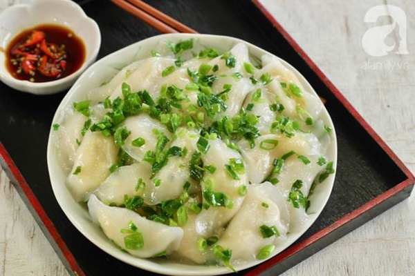 - Bước 7: Bắc nồi nước lên bếp, cho vào 1 thìa canh dầu ăn để giúp luộc bánh không bị dính. Khi nước sôi thì cho bánh vào luộc, khi bánh nổi và vỏ bánh trong hơn là bánh đã chín, vớt bánh ra dĩa, cho vào mỡ hành đều khắp bánh.