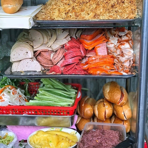Bánh mì thập cẩm - 144 Lê Thánh Tôn, quận 1: Bánh mì tại đây được bán trên một chiếc xe đẩy nằm gần chợ Bến Thành. Nơi đây là điểm hẹn thú vị để bạn thưởng thức hương vị truyền thống. Thực khách sẽ thoả mãn vị giác với những ổ bánh mì ngập nhân thập cẩm gồm thịt, chả, jambon, pate... kèm chua ngọt và dưa leo. Mức giá bánh mì chỉ 25.000 đồng/ổ. Ảnh: Momentoffood.