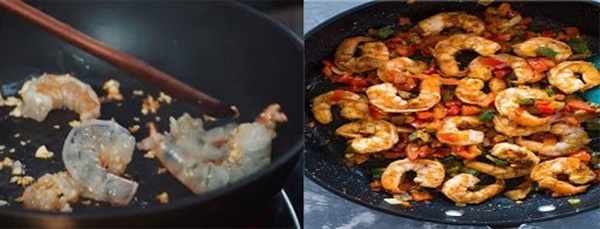 + Nhân bánh Pizza hải sản: Bắc chảo lên bếp cho 1-2 thìa dầu oliu đun nóng rồi cho nguyên liệu mực, tôm, bạch tuộc đã sơ chế cùng ½ thìa hạt nêm với muối đảo đều tay. Đến khi gần chín bạn cho ớt chuông và dứa vào đảo cùng trong 2 phút rồi tắt bếp.