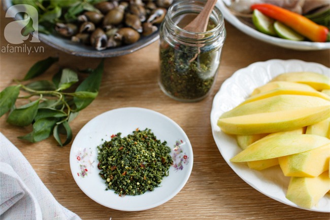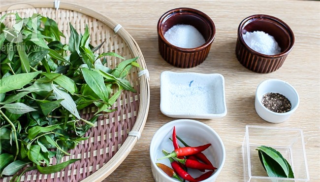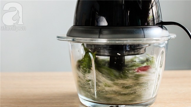 Cho rau răm, ớt, lá chanh, muối, đường, bột ngọt, tiêu vào máy xay.