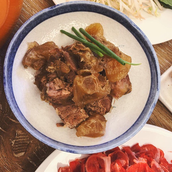 Phở gân bò do đại gia Đức An nấu. Phan Như Thảo mô tả "gân mềm dẻo ngon dã man".
