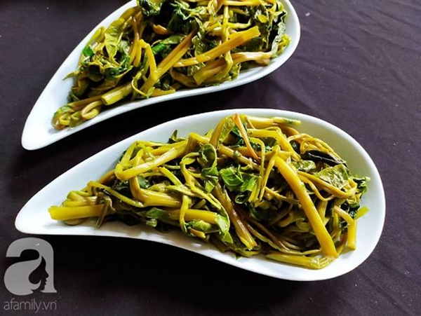 Khi nước sôi thì cho rau vào, để nước rau sôi tầm 2 phút thì đảo lại mặt rau rồi vớt ra đĩa. Thời tiết mùa này chủ yếu là rau đông ken, khi luộc màu sẽ không được xanh như mùa hè.