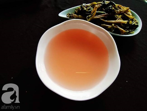 4. Nước rau muống luộc thêm gia vị, vắt ít nước cốt chanh để làm nước canh.