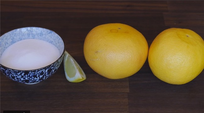 Trước tiên, bạn cần làm sạch vỏ cam. Rắc một lớp muối tinh lên lớp vỏ rồi dùng tay chà xát khắp bề mặt quả trước khi bổ để khử bớt tinh dầu và vị the đắng trên vỏ. Sau đó rửa lại với nước.