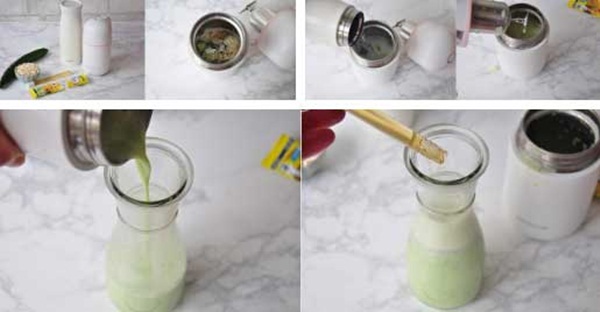 Nguyên liệu: 1/2 quả dưa chuột, 15g yến mạch, 15g sữa bột, một ít mật ong, nước nóng.