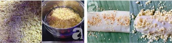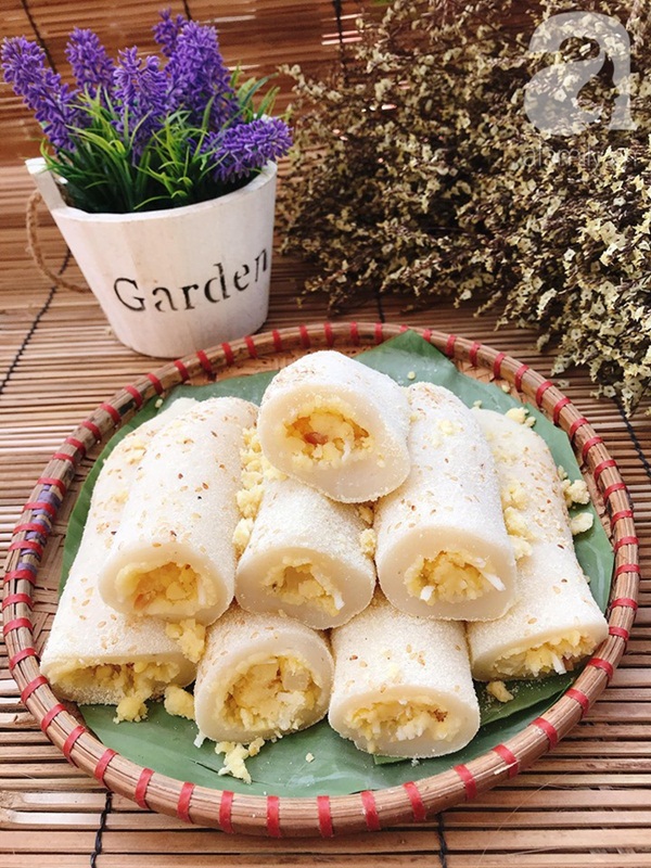 Nguyên liệu: 200g bột gạo nếp, 50g bột gạo tẻ, 50g đường trắng, 200g đậu xanh bóc vỏ, một ít vừng, vani.
