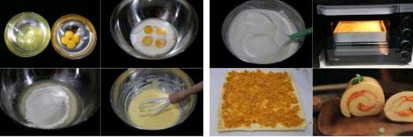 Nguyên liệu: 50g bột mì có gluten thấp, 4 quả trứng, 30g đường, 45g sữa tươi, 30g dầu ăn hoặc dầu ngô, 2 giọt nước cốt chanh. Phần nhần: 50g xốt mayonnaise, 30g chà bông.