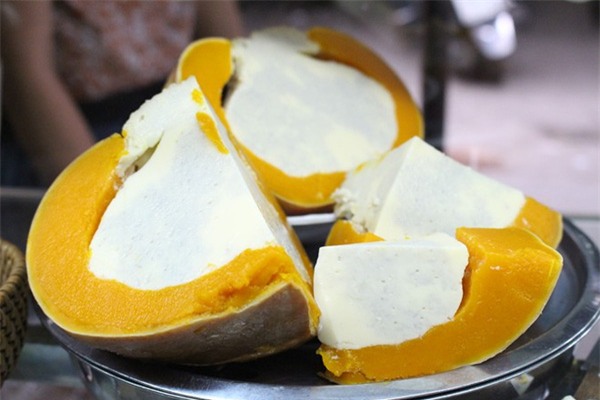 num-à-pơi). Trái bí đỏ được khoét ruột, thêm hỗn hợp gồm sữa bột, sữa