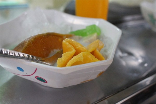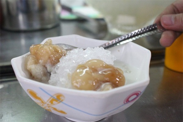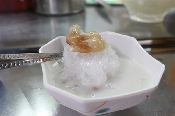hạt me quyện với nước cốt dừa, đá bào mát lạnh, lạ miệng.