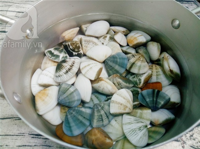 Con chang chang rửa sạch, đem ngâm với nước lạnh khoảng 2 giờ để chang chang nhả cát (nếu có) trong bụng ra. Cho chang chang vào nồi rồi đổ 700ml nước lọc vào ngập chang chang là được. Đặt nồi chang chang lên bếp nấu trên lửa vừa.