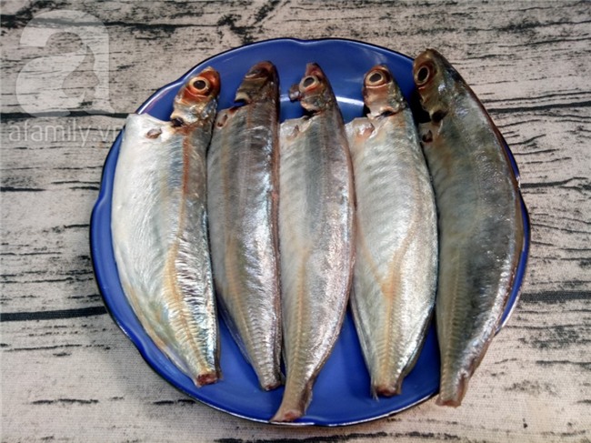 Cá nục làm sạch, cắt bỏ đuôi, vay và mang cá rồi móc bỏ sạch ruột, để lại đầu cá.