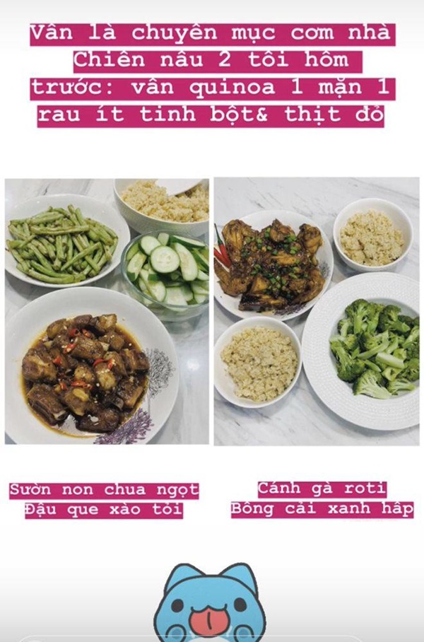 Nữ ca sĩ cũng rất chịu khó đổi món, tạo nên những thực đơn hấp dẫn hàng ngày.