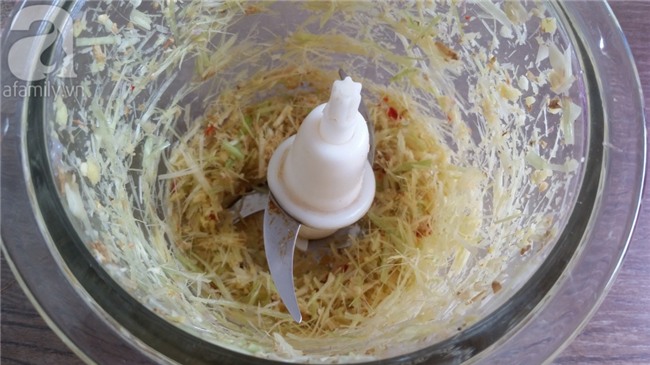 Sả, gừng, ớt cho vào xay nhuyễn, thêm chút nước rồi cho ra bát.