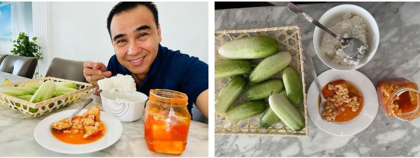 Bữa ăn với cơm nguội cùng dưa leo chấm chao vừa được nam nghệ sĩ chia sẻ trên trang cá nhân của mình.