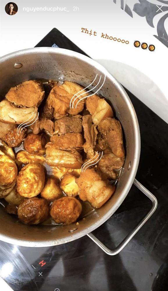 Một đối thủ rất đáng gờm trong làng bếp núc của showbiz Việt đó chính là Đức Phúc. Có vẻ như anh chàng này có tình yêu đặc biệt với món thịt kho thì phải, suốt ngày thấy làm món này.