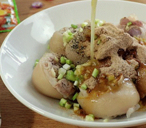 Ướp chân giò với 10gr tỏi băm, 3 gr tiêu, 10gr đầu hành cùng 1 gói gia vị hoàn chỉnh thịt kho tàu Knorr, thêm 50ml nước dứa đã ép là ta đã có phần sốt ướp hoàn hảo cho món chân giò kho rồi. Thoa đều phần gia vị và ướp trong 30 phút cho chân giò được thấm nhé!