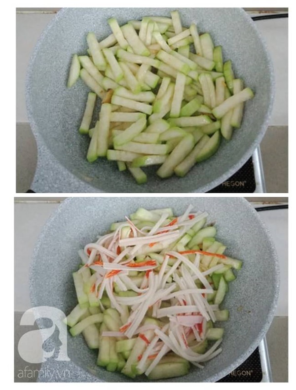 Quả bầu ngon ngọt kết hợp với thanh cua cho gia đình bạn một món xào thanh mát và lạ miệng. Quan trọng là rất hợp vị và ngon lành nhé!